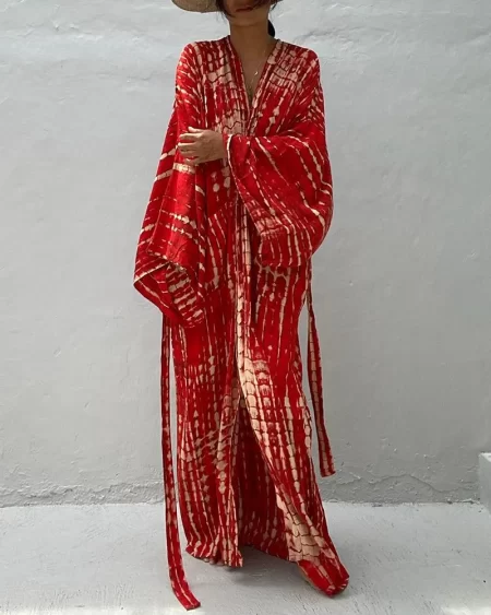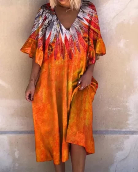 Be the first to review “Bohemian Geometric Print Flared Sleeve Casual Maxi Dress”